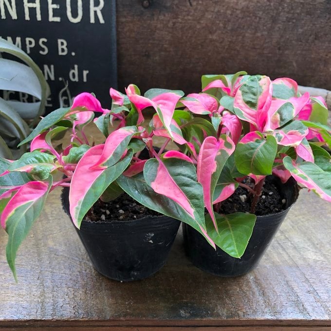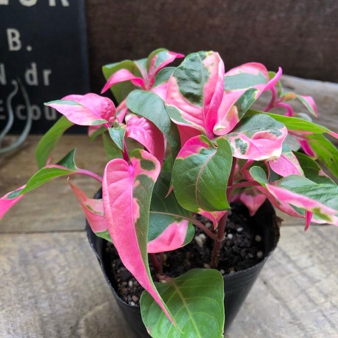 グリーンの葉に鮮やかなローズピンクの斑が入り、鮮やかな花のような華やかさ。