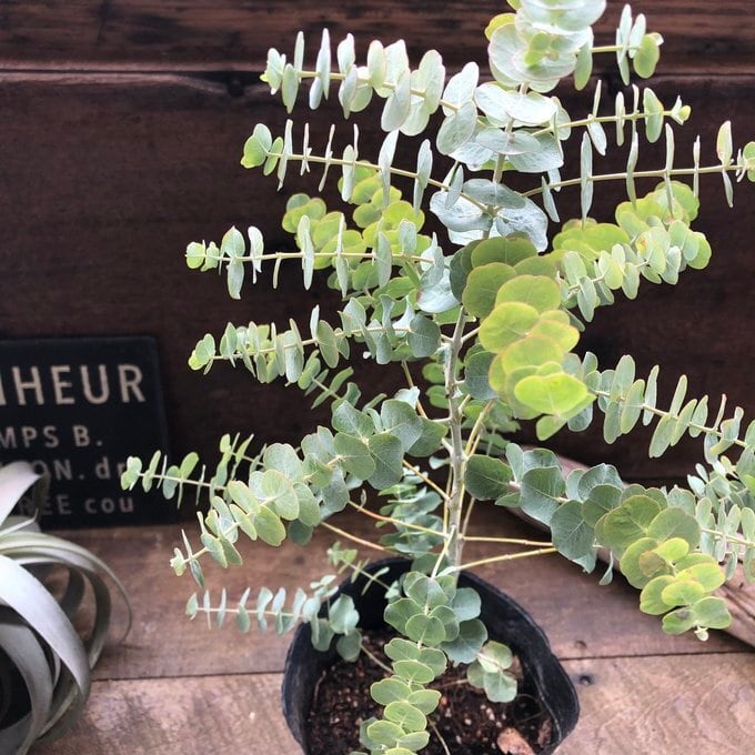 ユーカリ・クルセアナは銀色が混じった緑色の葉を持つ小型のユーカリです。