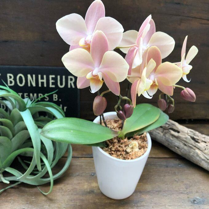 カフェラテのようなアンティークピンクの個性的な花色のレア品種! こんな可愛い色合いの胡蝶蘭玄関に欲しいです。