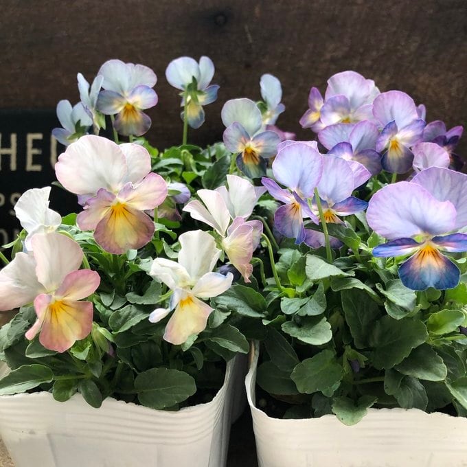 やわらかなアンティークピンクの花色が人気のビオラ「ピンクアンティーク」。