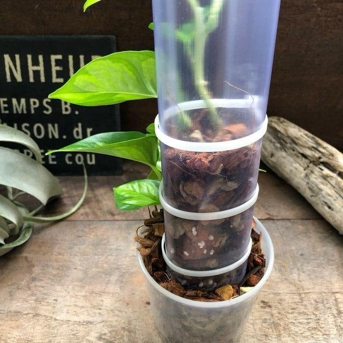 その為、ひと節ごとの根が登り棒の中で、発根することにより、より多くの栄養を取り込むことができます。さらに、節間の間延びを抑制し、より元気で大きな葉を作ることができます。