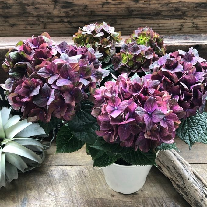 とても丈夫で花持ちが抜群で色変わりする紫陽花マジカル『チョコレート』です。