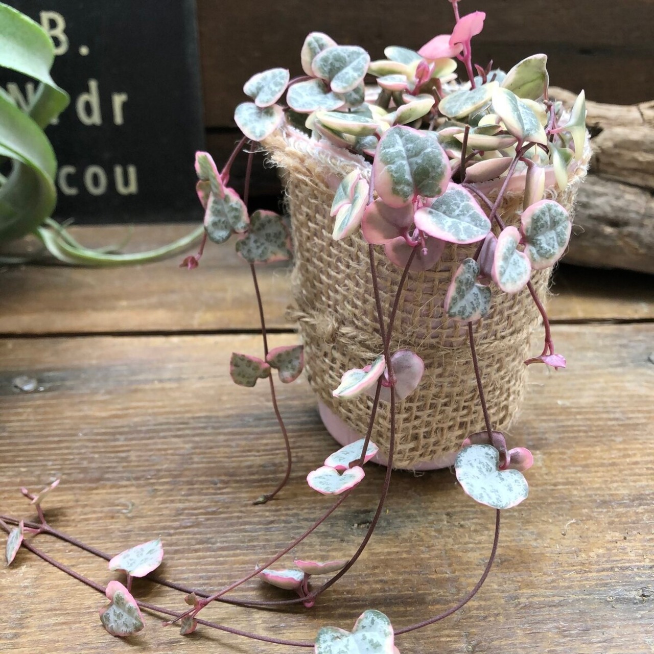多肉植物のピンクの斑入りのハートカズラ『レディハート』です。