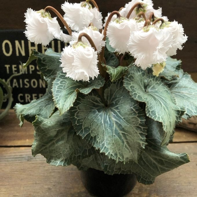 スワン 白鳥のシクラメン 希少 真っ白の花 フリンジ咲き 優雅 インテリア 鉢植え 贈り物 プレゼント