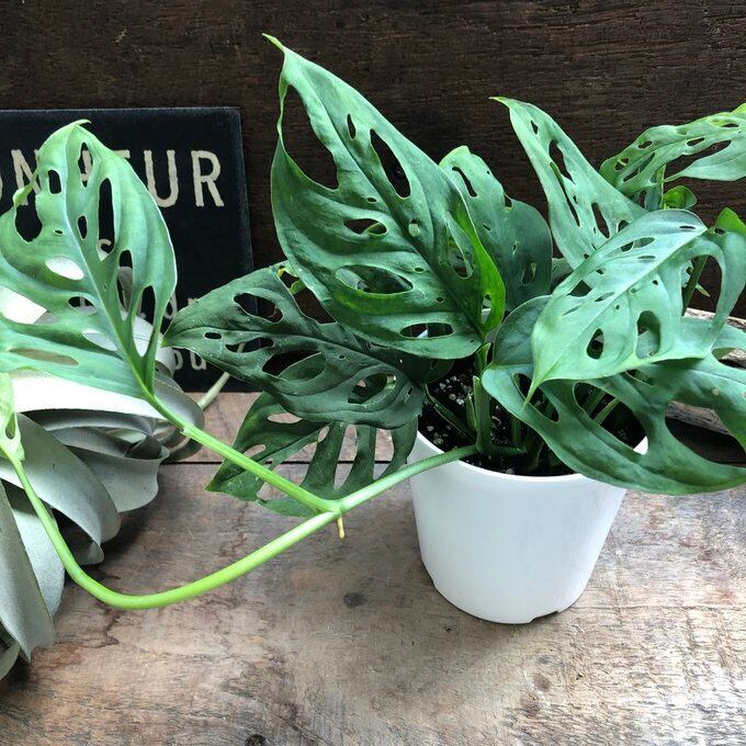モンステラのようにツル性で、似たような葉っぱをつけます。