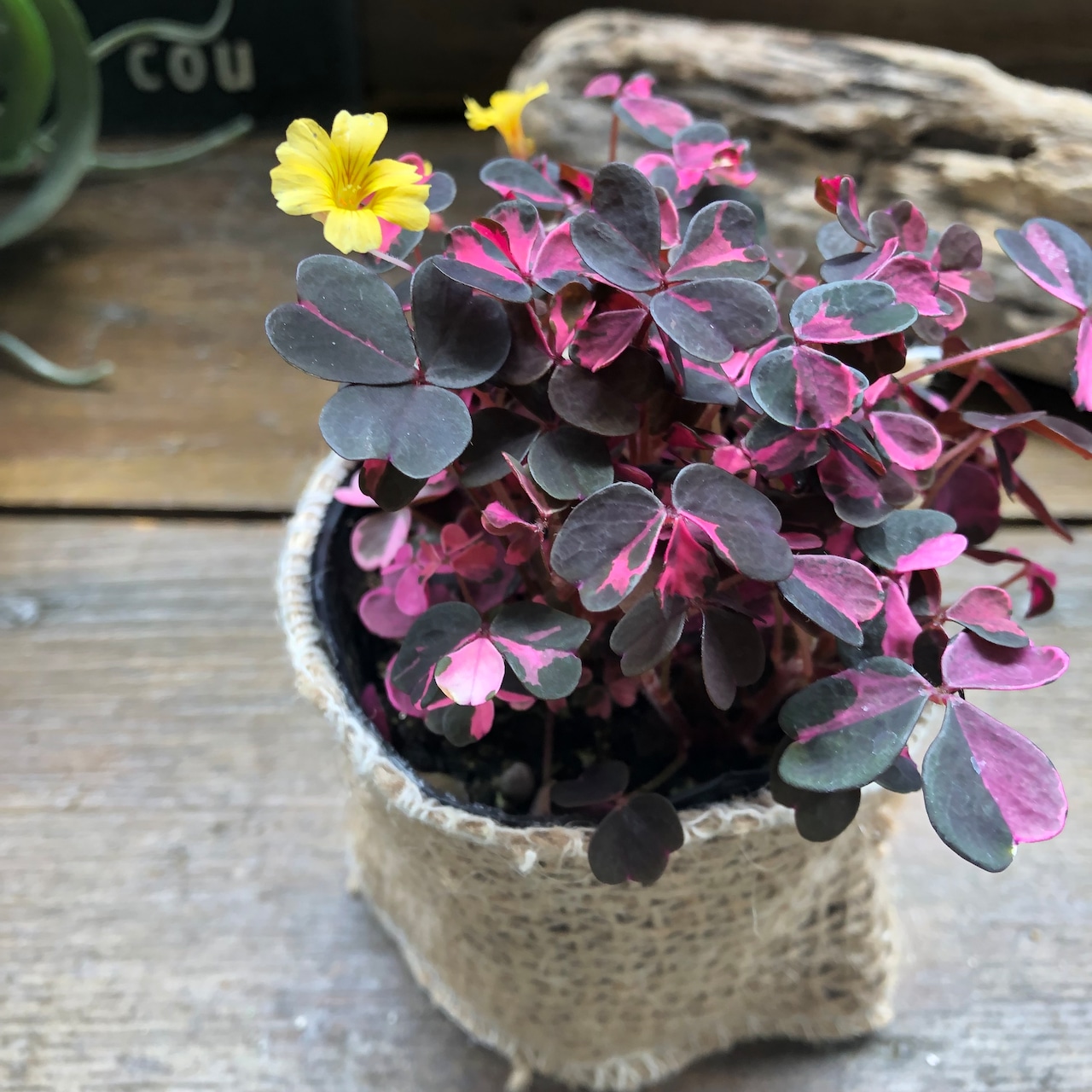 オキザリス『みやび』はパープル葉に黒系の斑が入った品種で