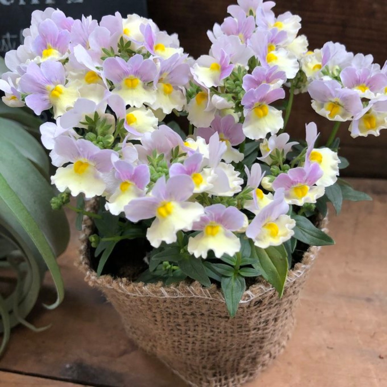 今までなかった色合いと、花付きがよく芳香性の高いネメシアメーテル ピンクレモネードです。