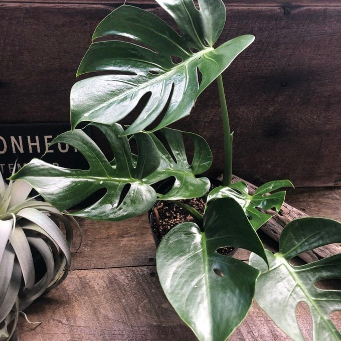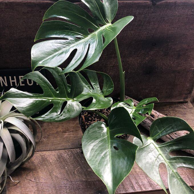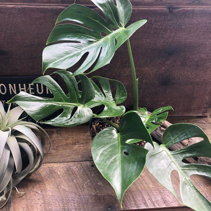 成長も遅く場所を取りがちなモンステラですが、こちらは場所を取らず飾りやすいタイプになります。