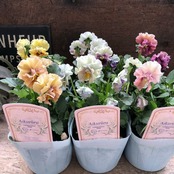 シエルブリエの花の雰囲気と育てやすさを残しつつエスカノールの花付きの良さとコンパクトにまとまる性質を引き継ぎました。また、明るいカラーの中にもアンティークな雰囲気もあり、花のサイズも丁度よく様々な場面で活躍できる品種です。