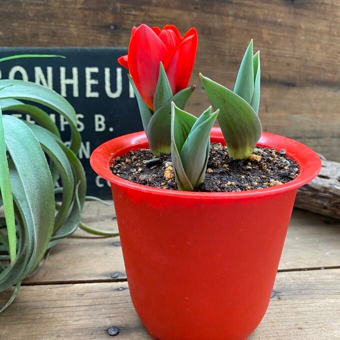 4号(直径12cm)鉢植え、1ポット3球植えです。