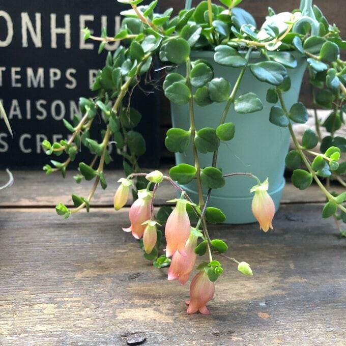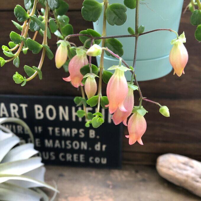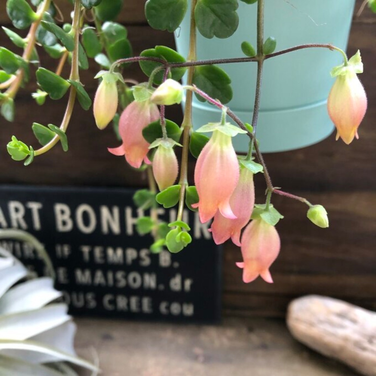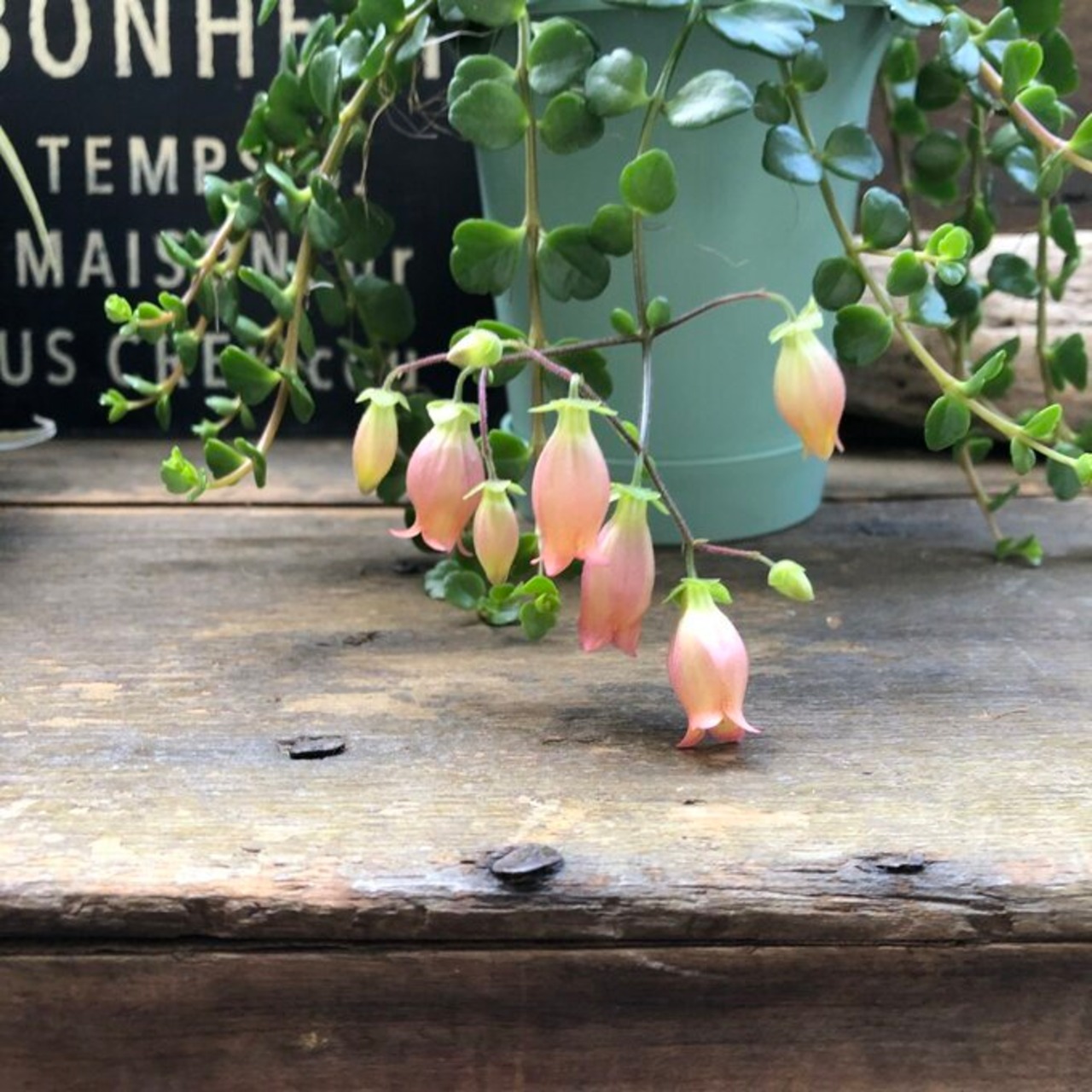 たくさんあるカランコエの種類の中でも、「フィフィ」は珍しい枝垂れタイプで、冬から春にかけてサーモンピンクのベル咲きのお花を楽しんで頂けます。